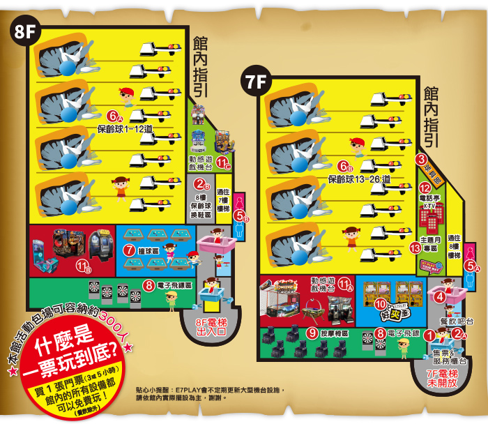 本店設施更新週期為每季一次:每年1月、4月、7月、9月於官網同步更新相關資訊。如有臨時異動或故障維修之情況,仍依館內實際擺設機台為準,敬請見諒!建議您如有專程非玩不可的設備,請務必於前往遊玩前,事先致電各館洽詢特定設備的狀況喔!