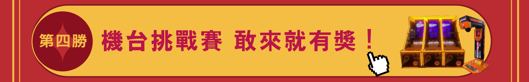 ★好玩4:機台挑戰賽 玩愈多獎愈多 跨全館遊戲機免投幣暢玩,春節期間加碼舉辦挑戰賽,揪朋友一起拚成績、拿獎勵,笑聲和紅包一起帶回家