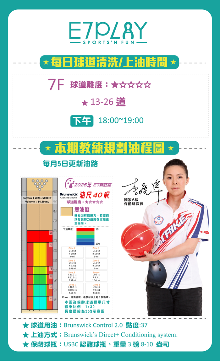 如遇特殊情況,臨時變更當日球道清洗或上油時間,將以店內現場廣播通知為準!恕不另行通知,敬請見諒!