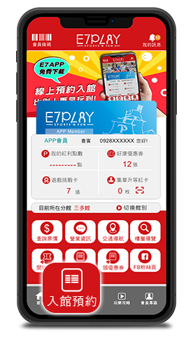 紅卡會員獨享! 成為紅卡會員,門票終身享 9 折,還有生日禮等著你!原本有實體卡的玩家,也能在 APP 內一鍵綁定,用手機代替實體卡,所有優惠隨時查閱,方便又快速! 現在就下載 APP,讓你的 E7 玩樂體驗更加分!